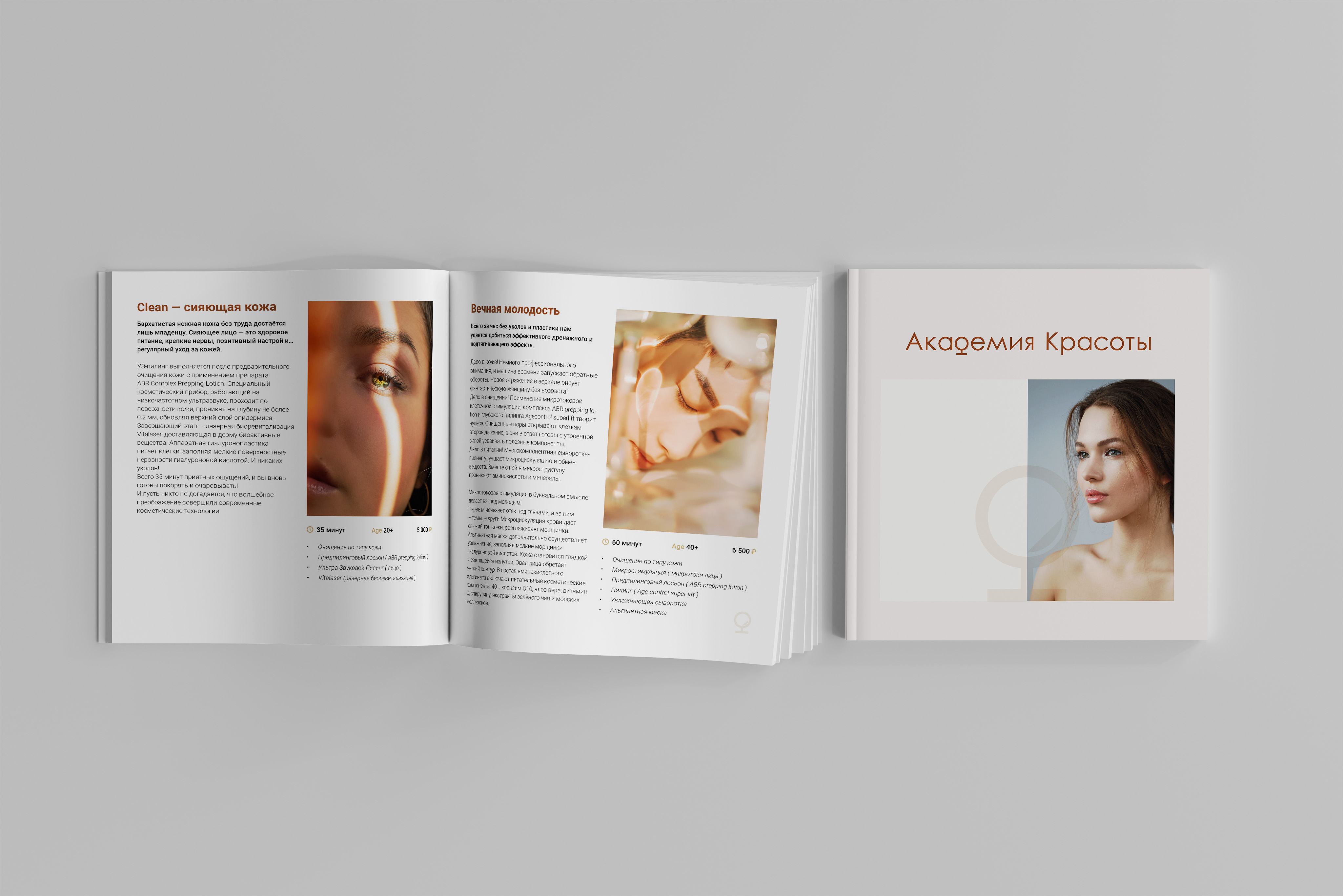 Как кратко и красиво рассказать об услугах, марках, оборудовании, используемых в клинике Академия красоты и выгодных предложениях? С помощью буклета.